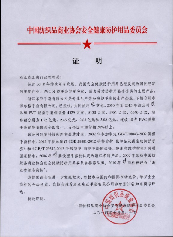 • 全國労働保護(hù)業(yè)界推薦商標(biāo)登録