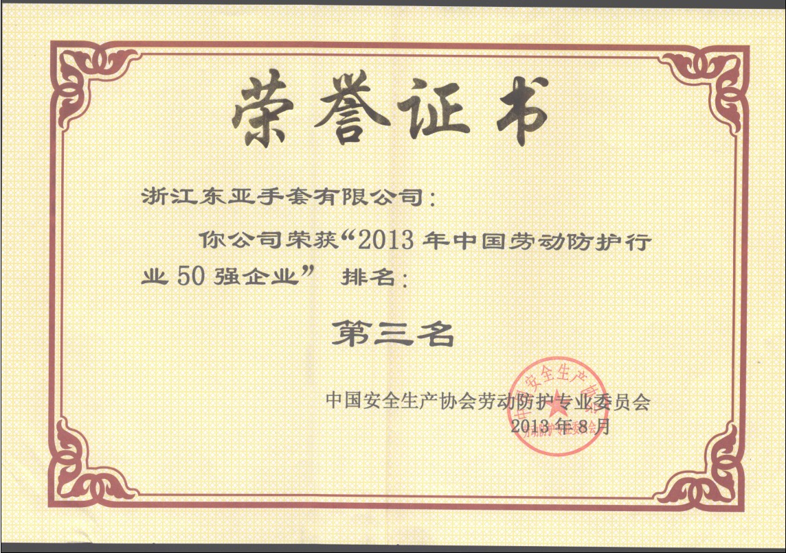 • 2013年度中國労働保護(hù)業(yè)界ベスト50企業(yè) 第3位入賞