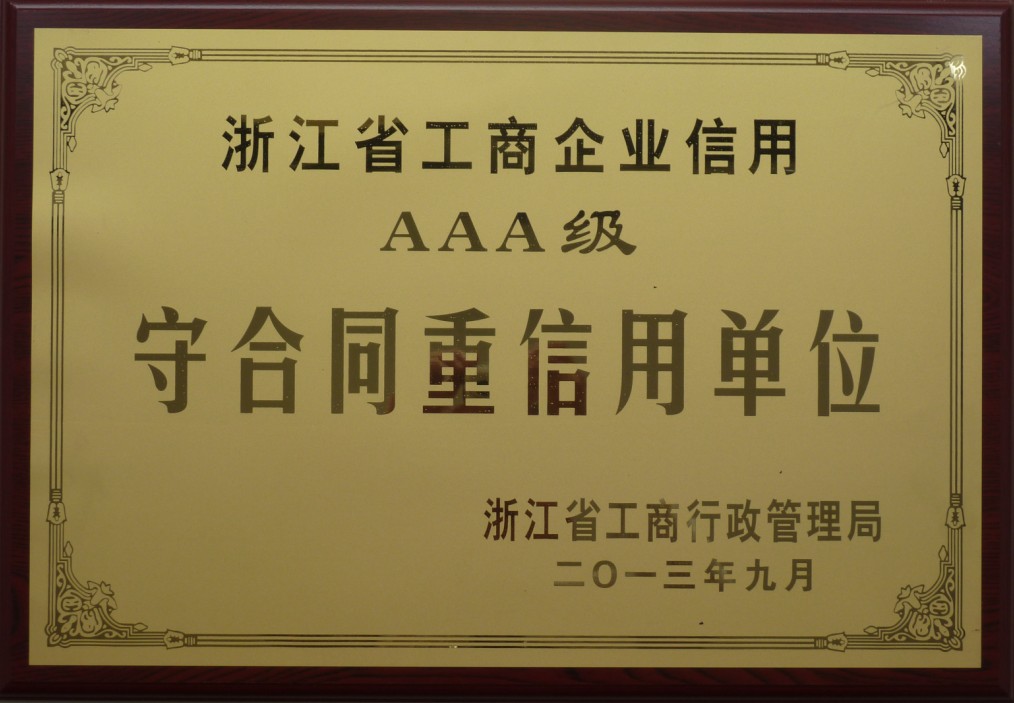 • 浙江省工商企業(yè)信用AAA級単位當(dāng)選